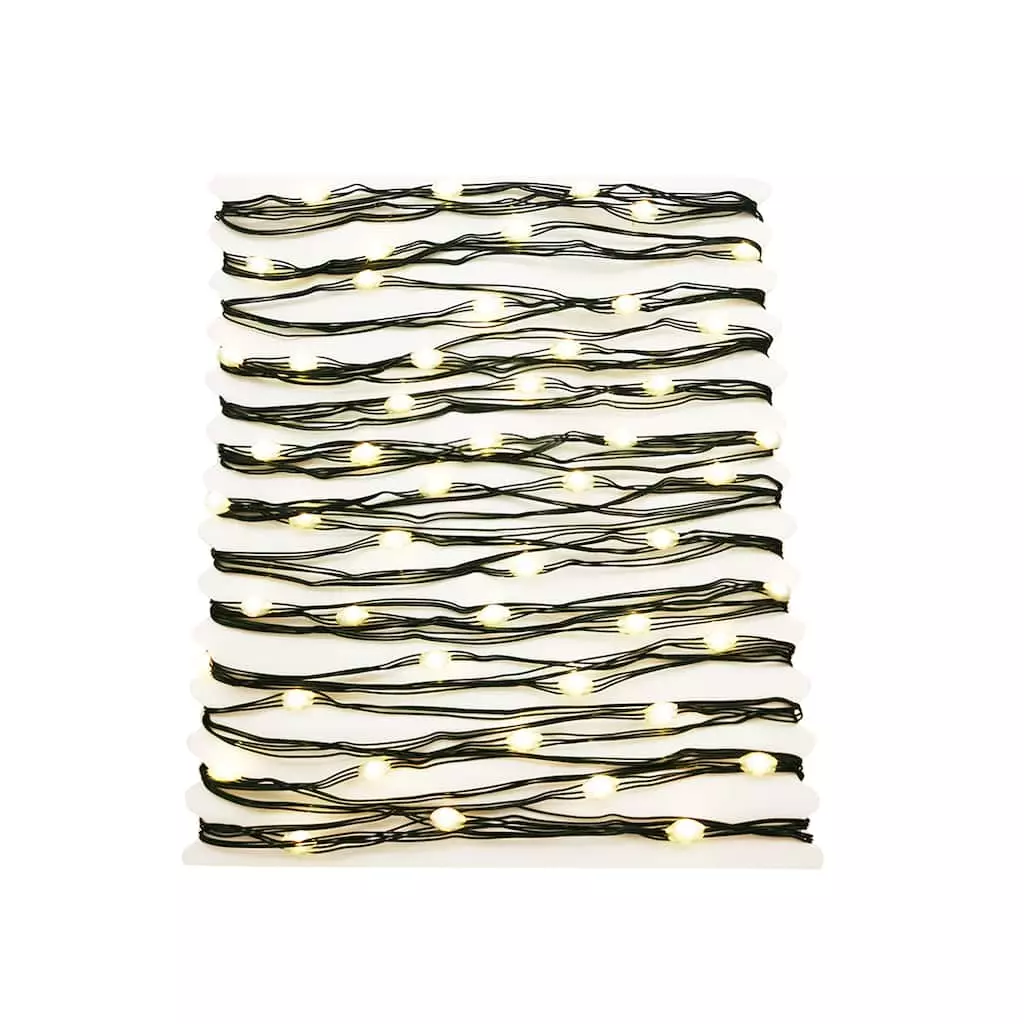 Add a beautiful glow to your holiday home décor with this green wire LED light string. You can pair it with wreaths, garlands and other décor accents on your mantel or bookshelf. With bright illumination, LED lights use 80% less energy than traditional lights. This light string features eight light modes: steady on, twinkle, glisten, waves, sequential, chasing, fade and combination.