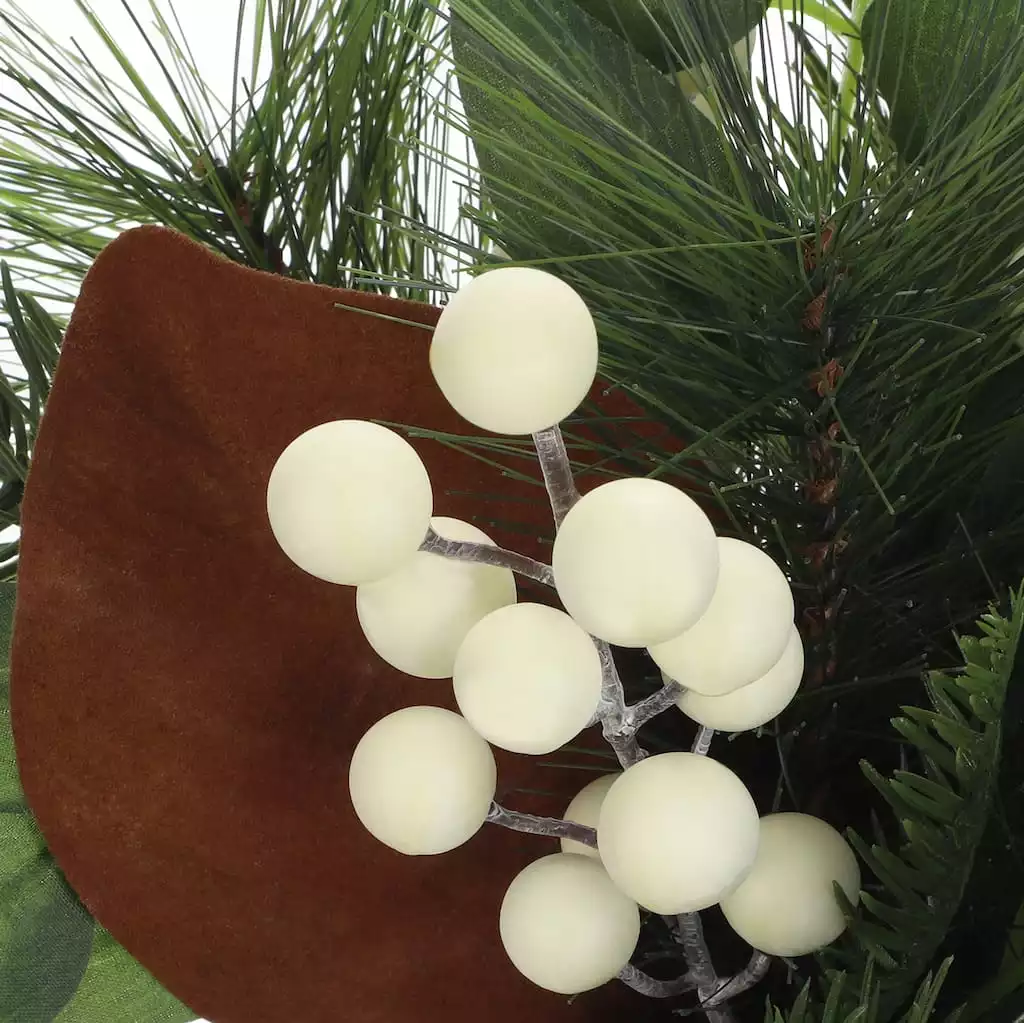 This tabletop mixed pine, berry and eucalyptus arrangement is perfect for adding to your winter dรฉcor. Place it on your table or counter for the perfect look!