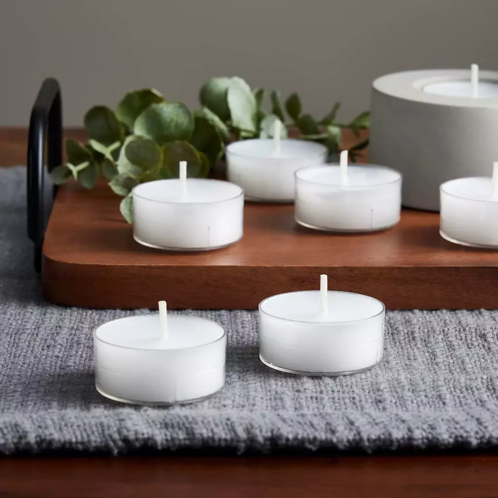 Use these simple tealights to incorporate the soft glow of candlelight into your life. The gentle beauty of flickering luminescence is perfect for any occasion, formal or informal.ย Create enchanting tablescapes for weddings and dinner parties, add ambiance to elegant bedrooms and bathrooms, or build a beautiful setting wherever you want a peaceful, relaxing mood.