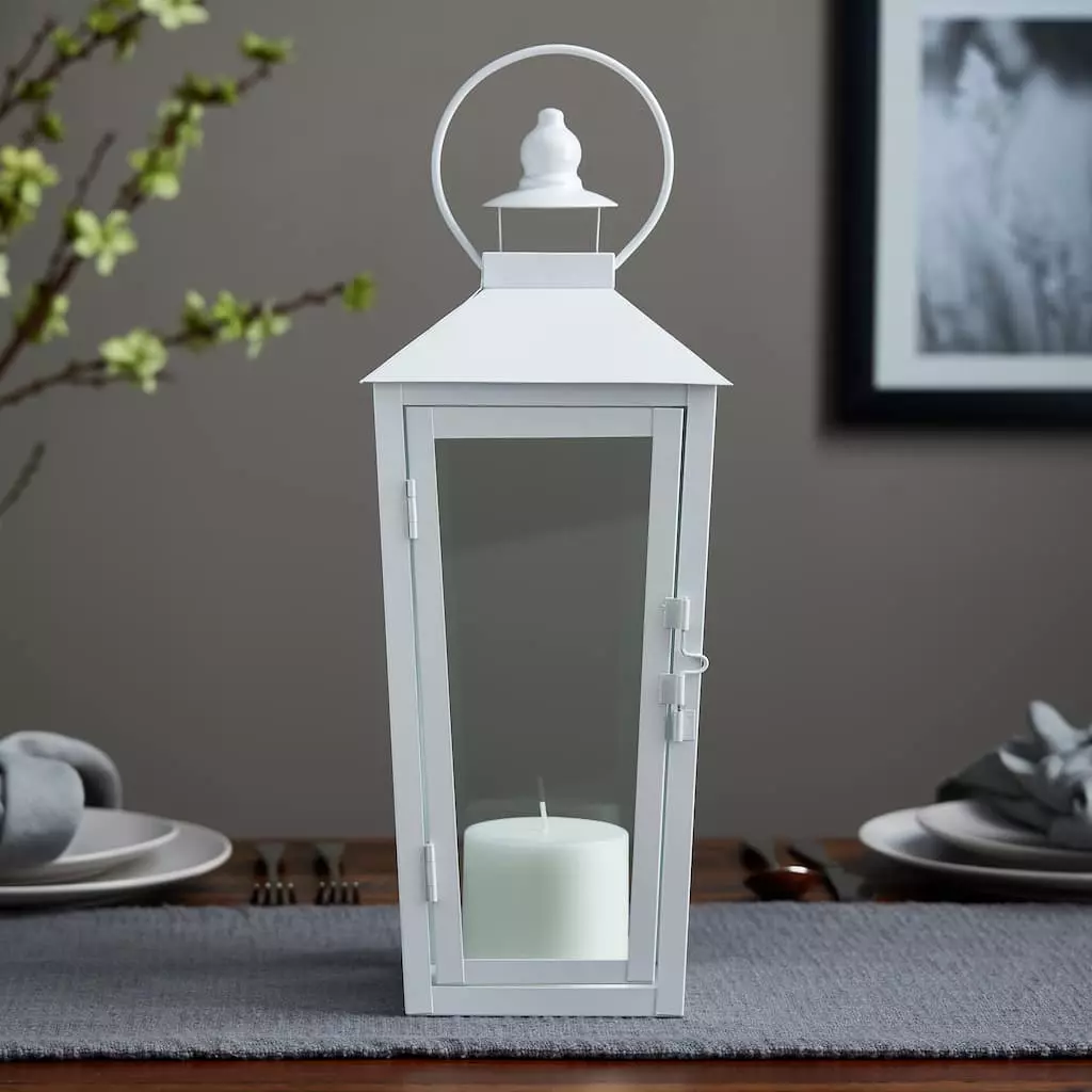 Illuminate your home by placing a candle inside of this black iron lantern. Team it with a beautiful floral arrangement and seasonal accents for the perfect display.