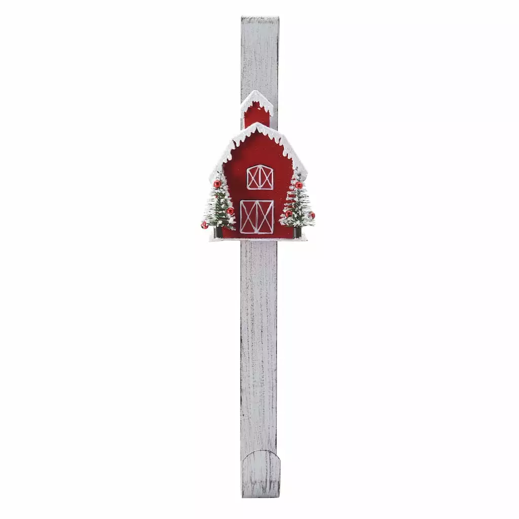 Any wreath would happily be displayed on this seasonal hanger. It features a cute barn attached to add more depth and dimension to your décor.