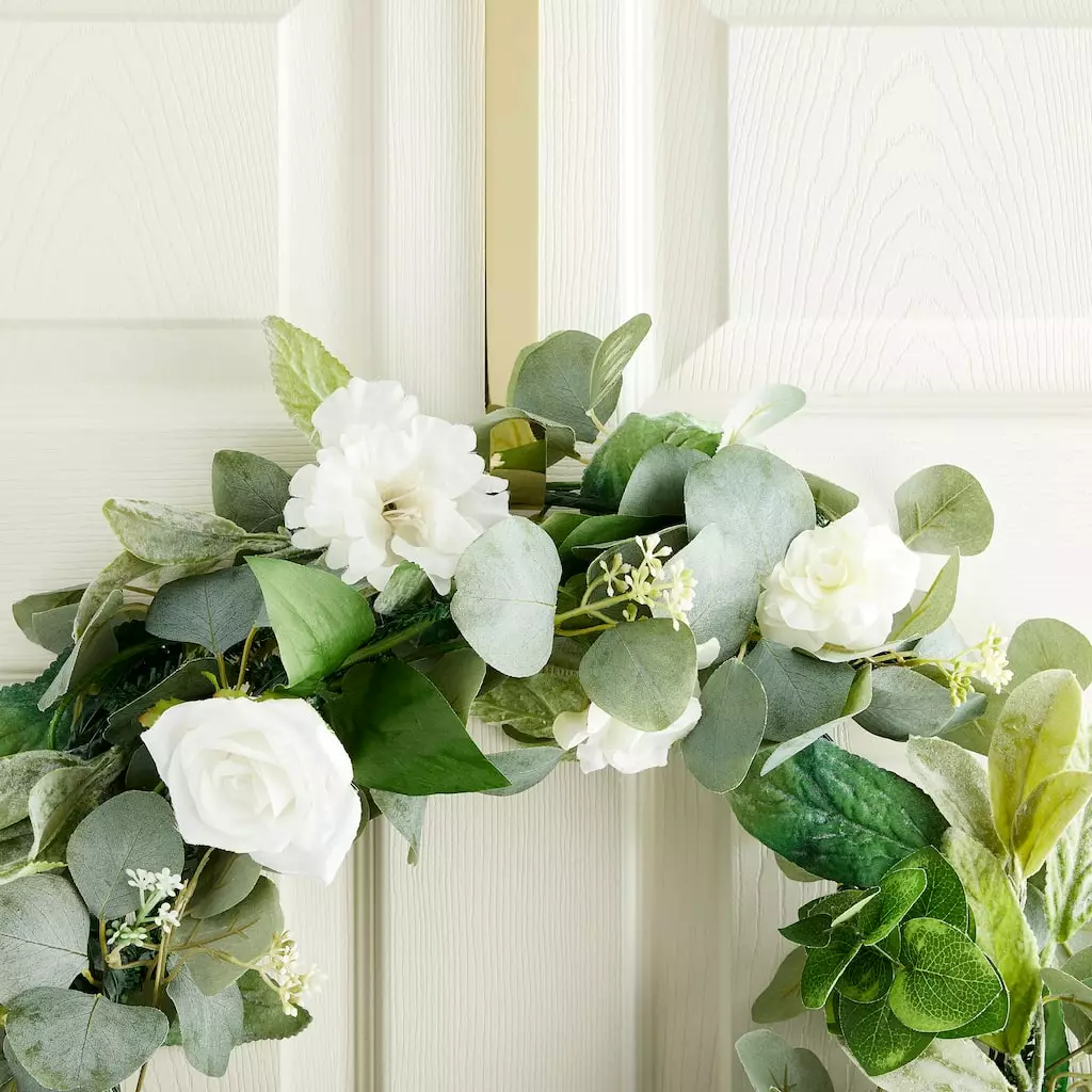 Create the perfect mood for every holiday or for every room with beautiful hanging displays. This wreath hanger is perfect to display wreaths, swags, bows, pew markers and more quickly and easily. The metal hanger is designed to fit perfectly over interior or exterior doors. It works well on wood, metal and glass doors, and it eliminates the need for screws and nails.