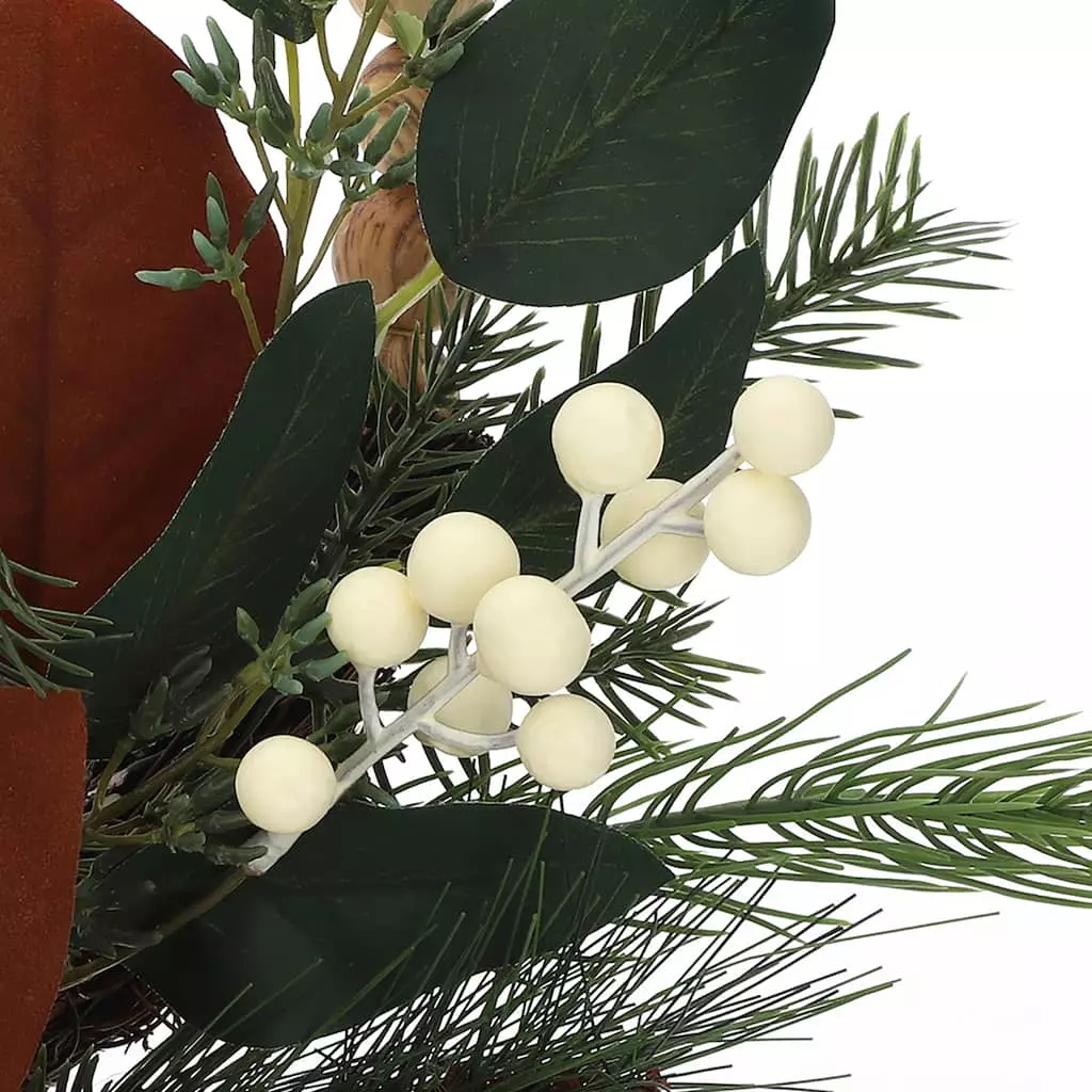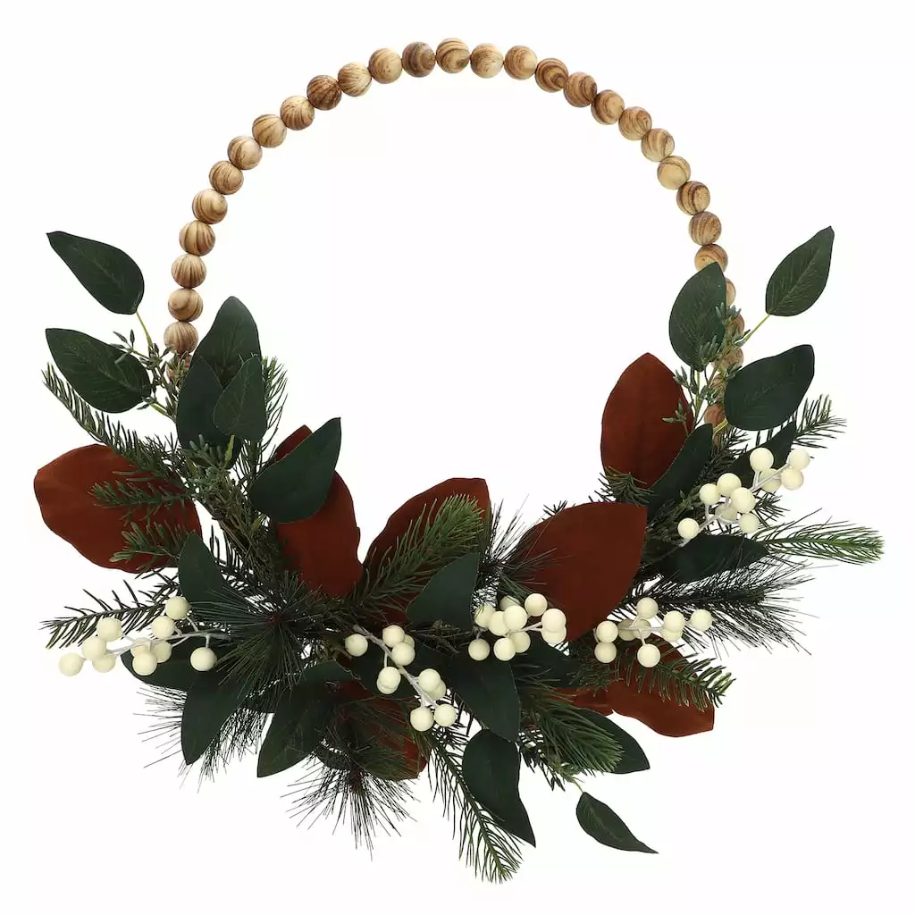 Warmly welcome guests to your home with this charming holiday hoop wreath from Ashland. With a festive gathering of berries, eucalyptus, pine and round beads, this piece will look lovely displayed on your front door or over your mantel for the Christmas season.