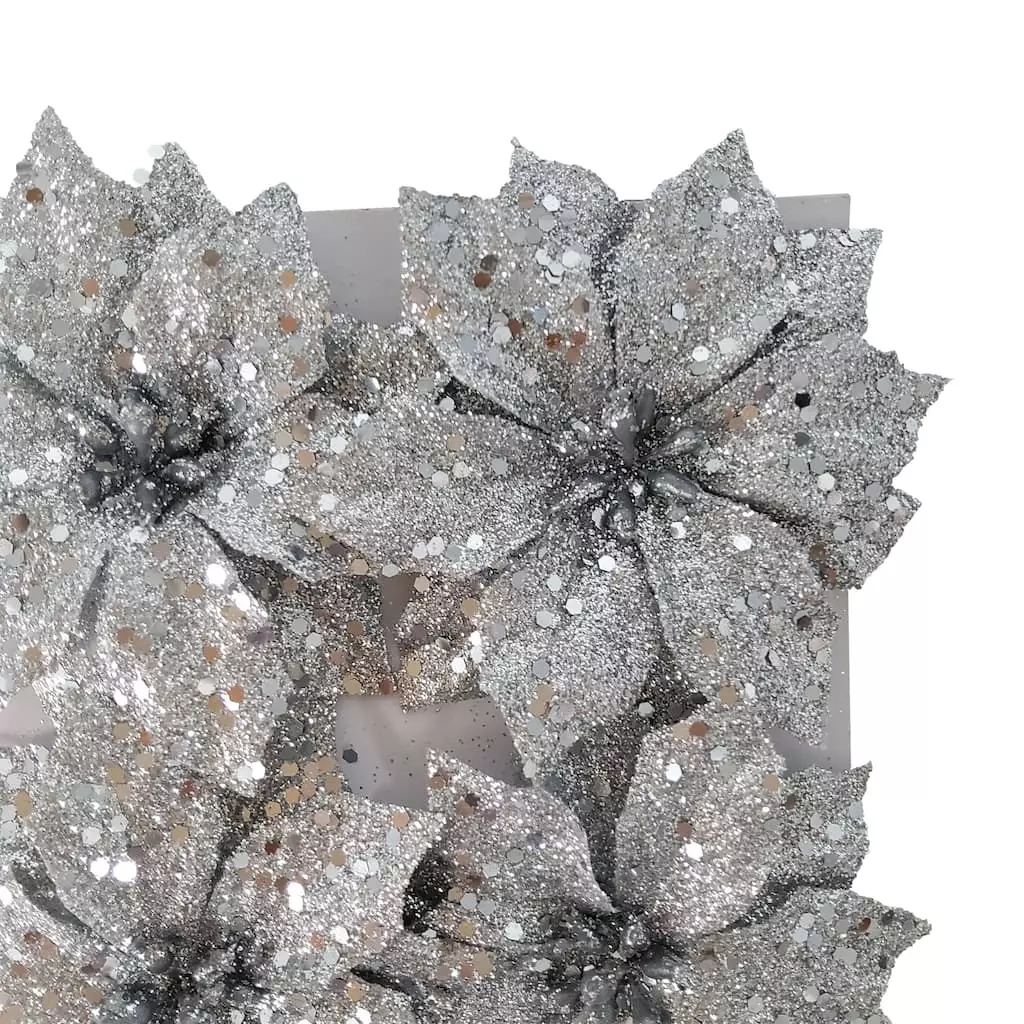 These poinsettia accents are perfect for your DIY holiday projects. Each flower features a beautiful sparkly finish!