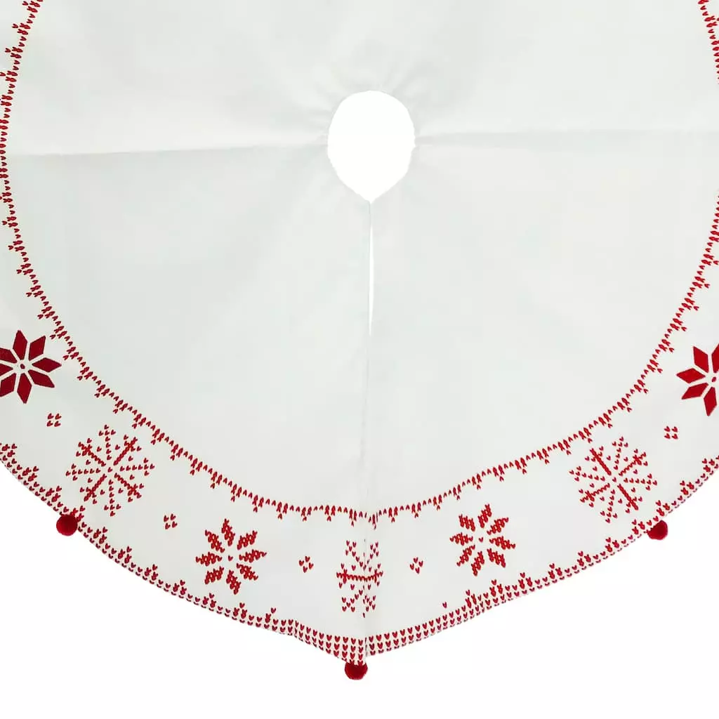 This charming Christmas tree skirt, featuring a Fair Isle style design, is a fantastic way to complete your holiday decorating. Wrap around the bottom of your tree to add extra cheer to your home for the season.