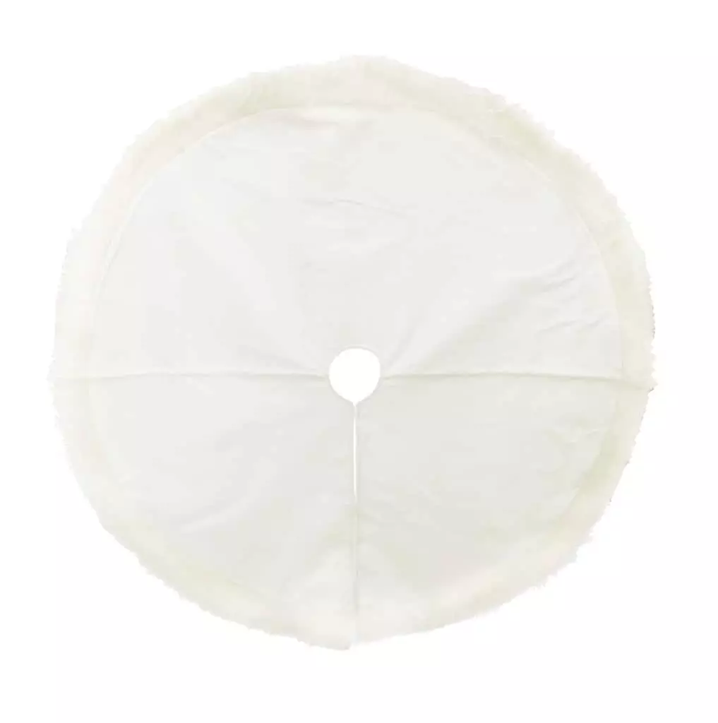 This white tree skirt with fur is guaranteed to complement your tree. Team it with bright tree ornaments and lights for the perfect holiday display.