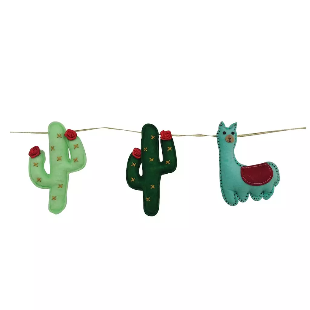 Bring a touch of southwest flair to your Christmas decorating with this quirky garland of adorable alpacas and cacti. This playful string makes a great addition to your tree, or drape across a mantel or bannister paired with lights and festive ribbon for a fun display full of holiday cheer.