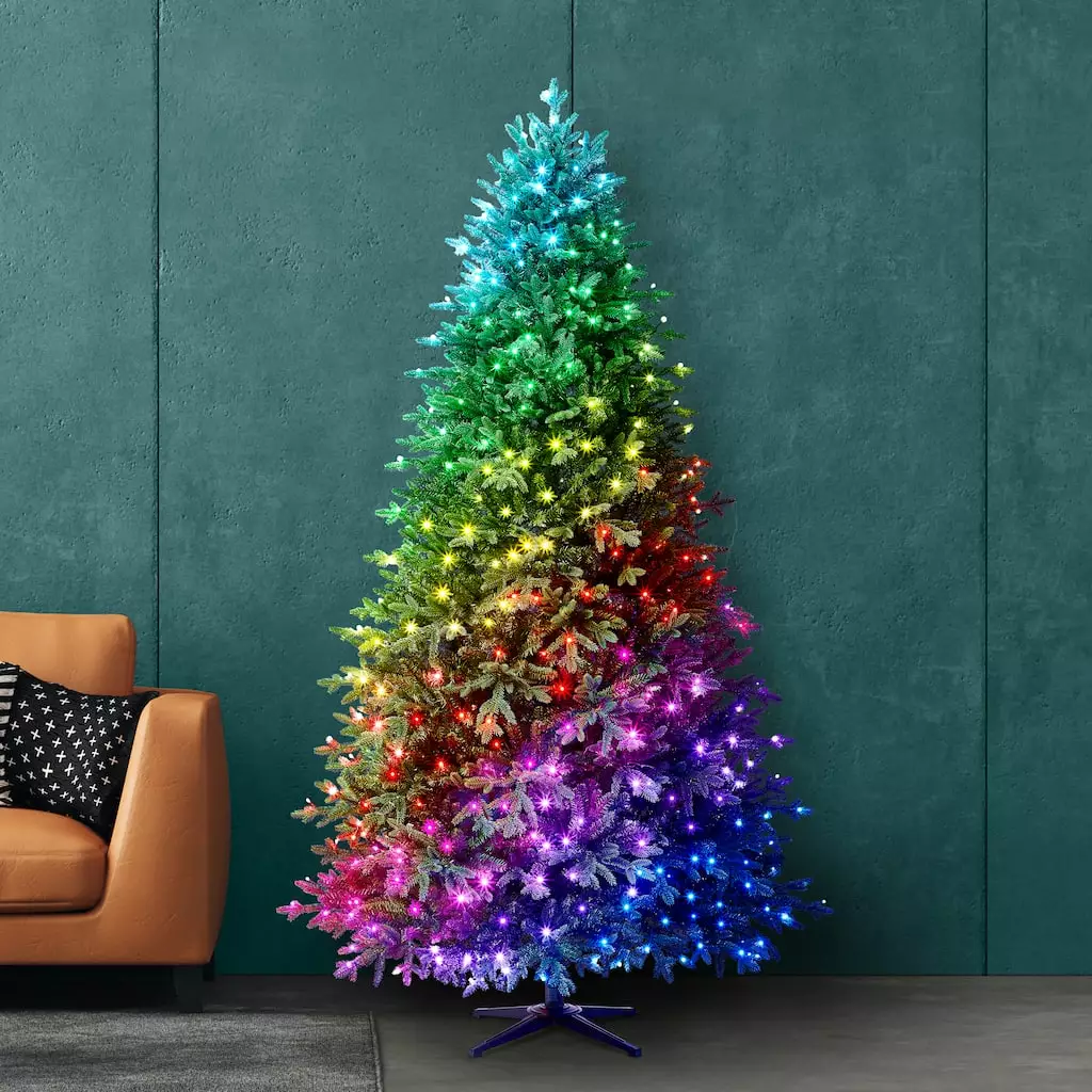 Your home can host many extravagant light shows with the 7.5 ft Pre-Lit Laurel Twinklyโข Quick Setยฎ Artificial Christmas Tree. Pre-lit with 435 Twinklyโข LED lights, you can enjoy, create & share kaleidoscopic effects, conveniently through the Twinkly mobile app. With the innovative Quick Setยฎ technology, the tree lights up once poles are connected, allowing you to set up your tree in a breeze. This exquisite tree also features 3,667 easy-to-shape branch tips and includes a sturdy metal stand. Spread the holiday cheer every Christmas with this glowing tree!