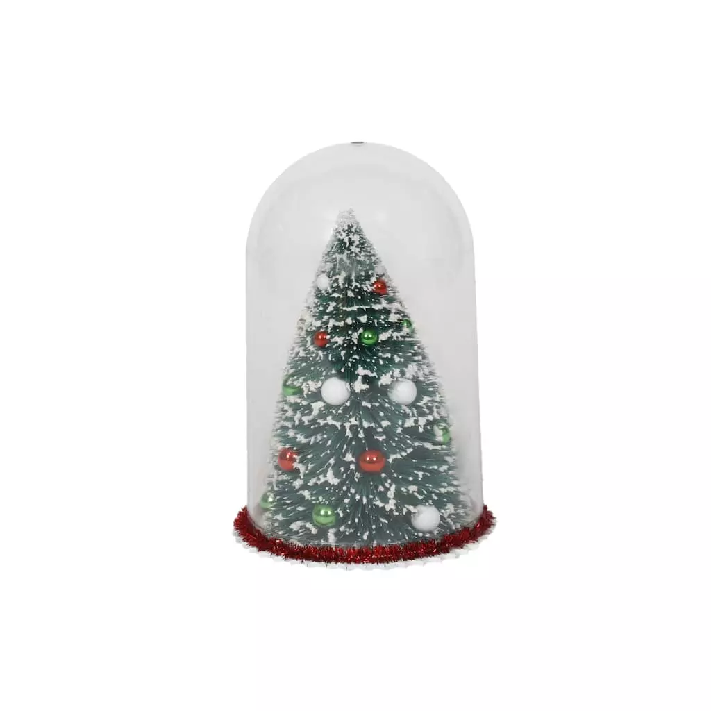 This festive tree is placed inside of a dome and designed with ball ornaments to enhance your holiday dรฉcor. Put it on your entryway table, desk, or mantle, or any area for added Christmas cheer.