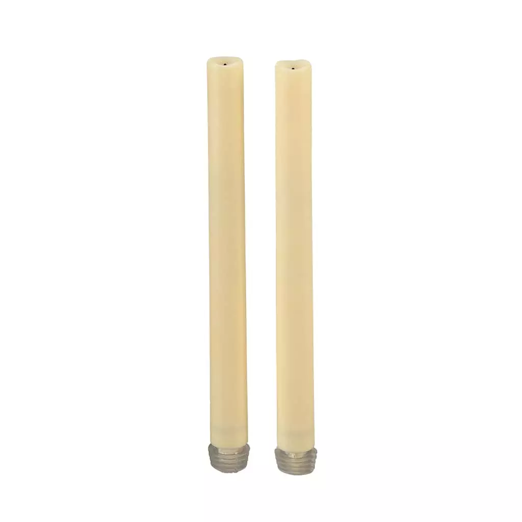 These LED tapers have been dipped in real wax, so they look and feel like real candles! The patented, realistic wick flickers like a real candle too. The tapers have a five hour timer, which turns the candle on at the same time every day and automatically shuts itself off five hours later.ย