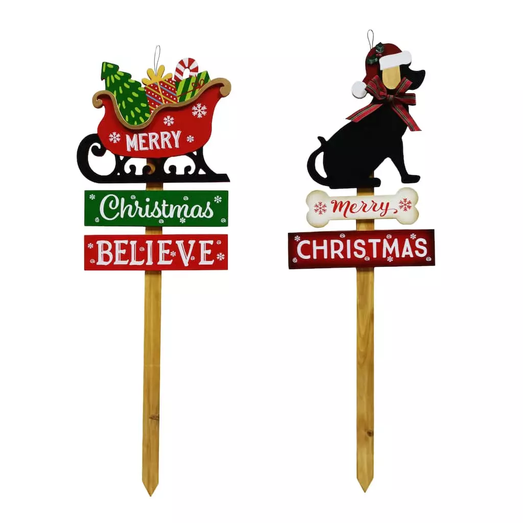 This Christmas yard stake is perfect for spreading holiday cheer! Place it in your yard, garden, or on a patio to enhance your festive outdoor dรฉcor.