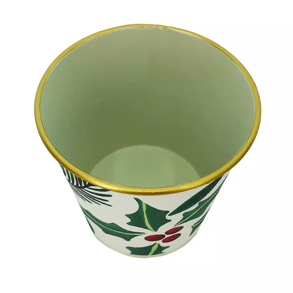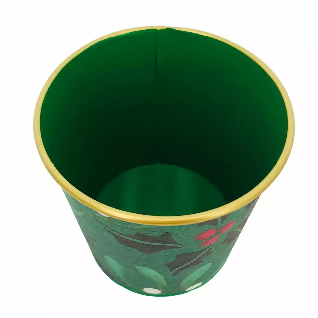 Incorporate this festive mistletoe bucket into your holiday dรฉcor this season. Fill it with small knickknacks or faux flowers. Then, place it on your entryway table, mantel, desk, or any other area for added Christmas cheer!