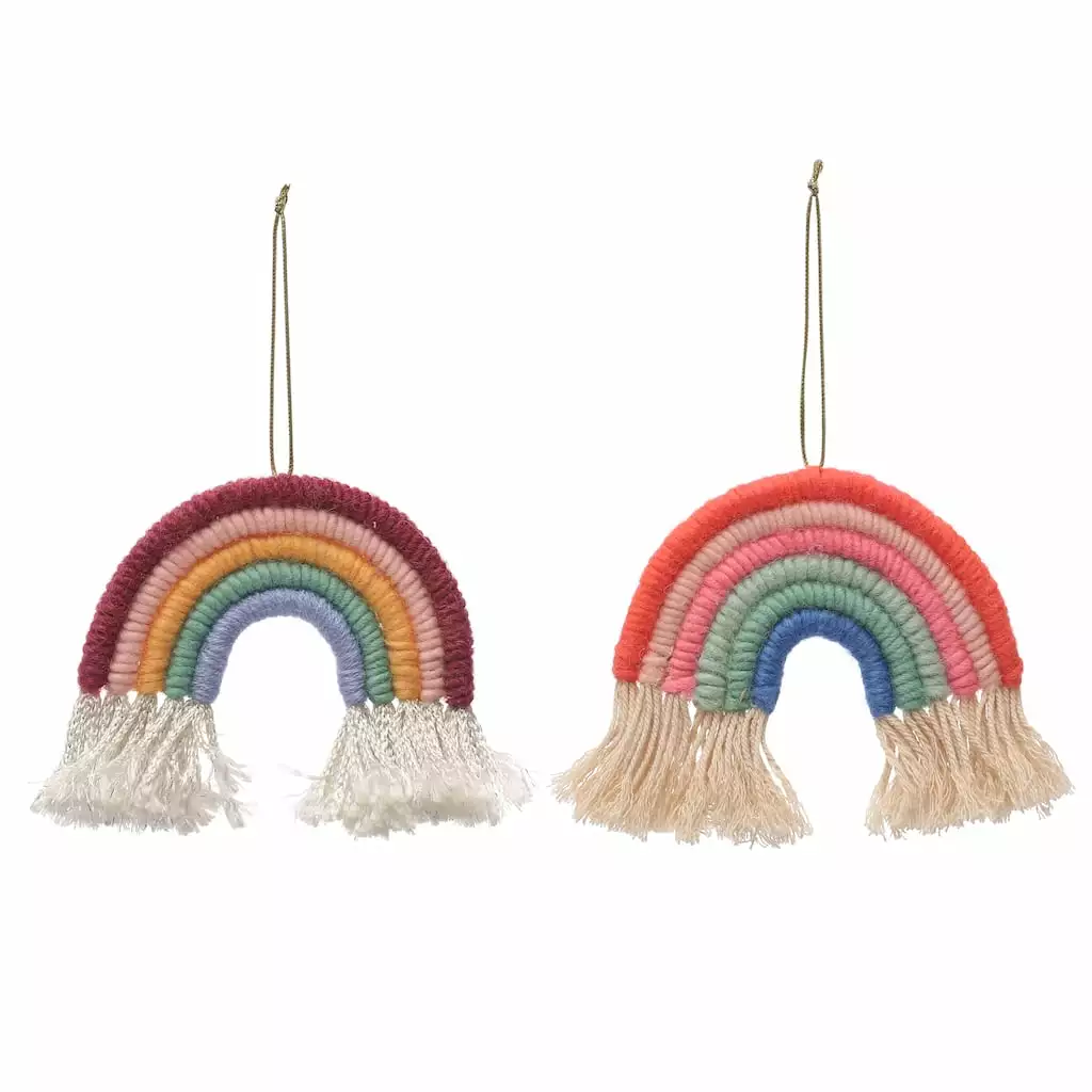 This beautiful rainbow ornament is perfect for sprucing up your holiday dรฉcor. Use it to embellish a tree, wreath, or garland for a whimsical touch!
