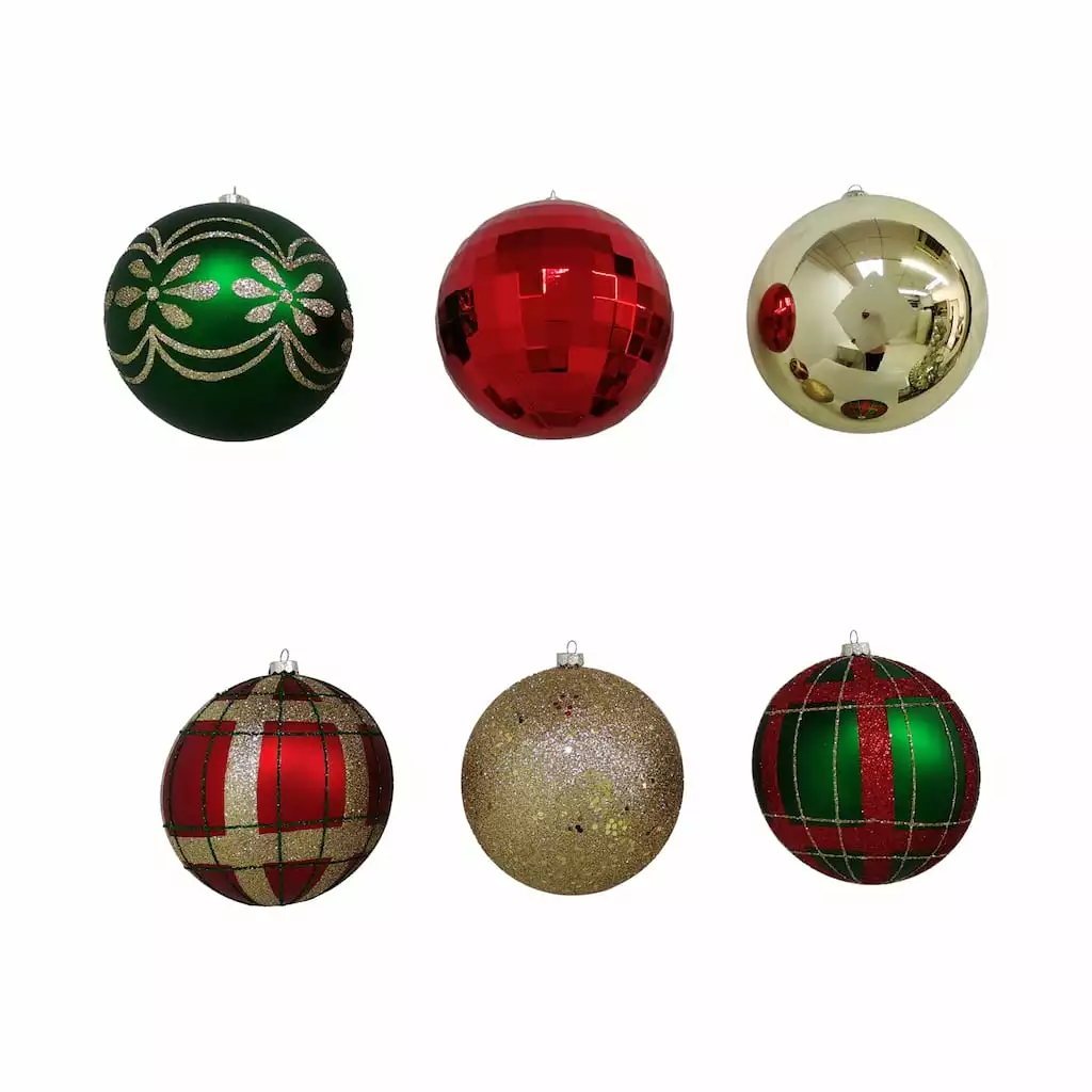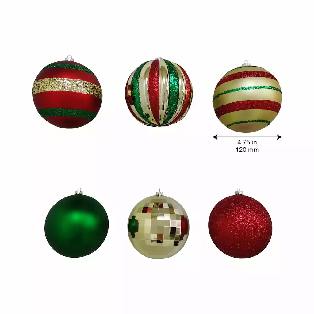 Give your holiday tree touches of shimmer and shine using this set of red, green and gold ball ornaments in a variety of patterns, textures and finishes. Their shatterproof design combines the beauty and luster of real glass with the unbreakable practicality of plastic, making them a great choice for bringing a bit of worry-free Christmas cheer to your dรฉcor.