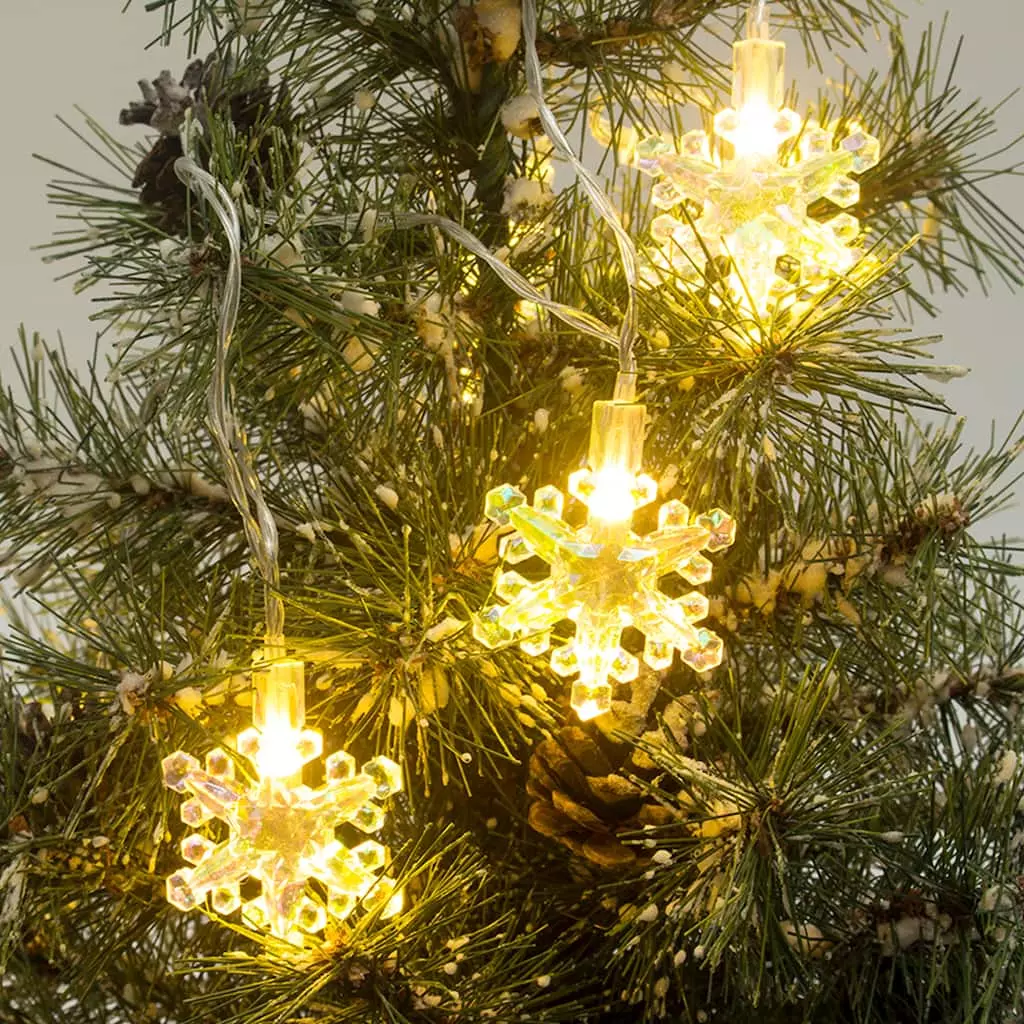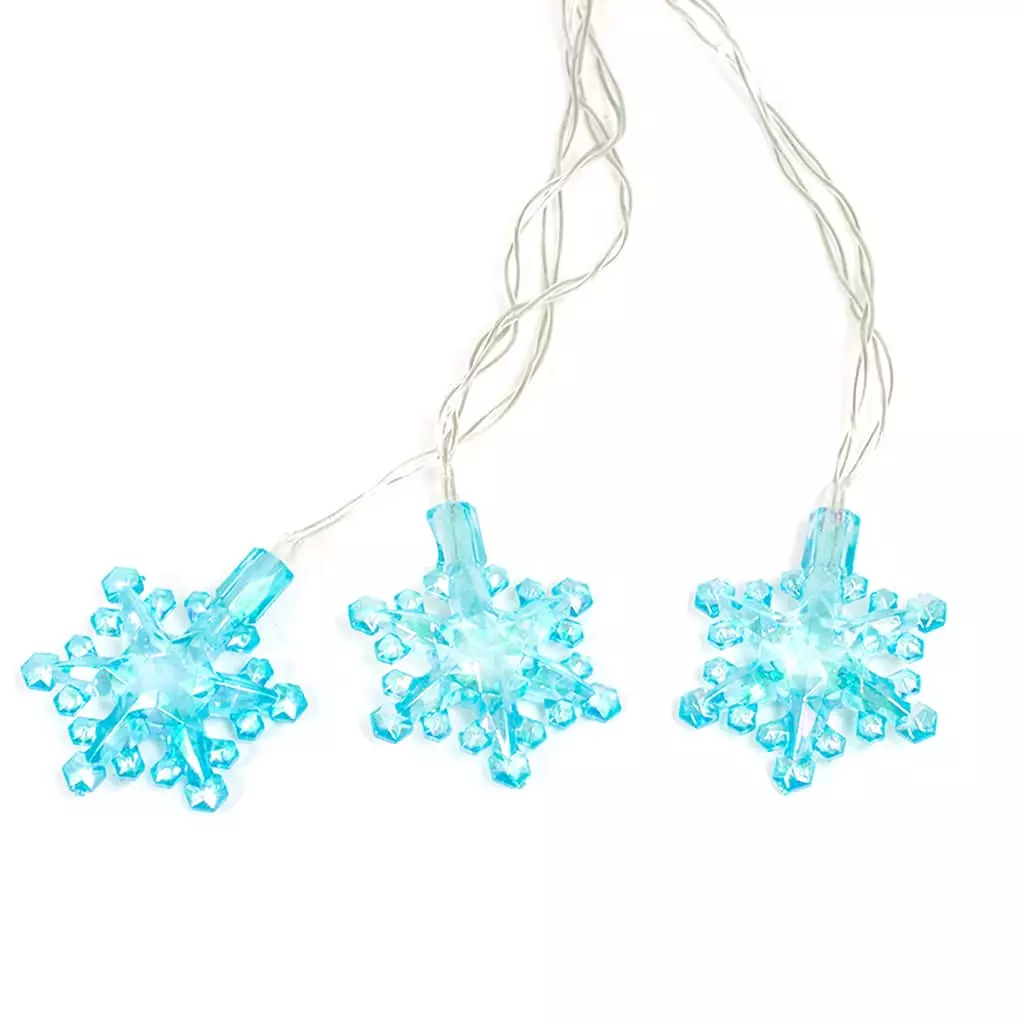Make the season bright with these festive snowflake-shaped crafting lights from Ashland! These warm white battery-operated LED bulbs on a clear wire feature steady burning, fading and flashing light settings and a timer. These lights are ideal for use in handmade gifts and lit holiday floral dรฉcor to display in your home for the Christmas season.ย