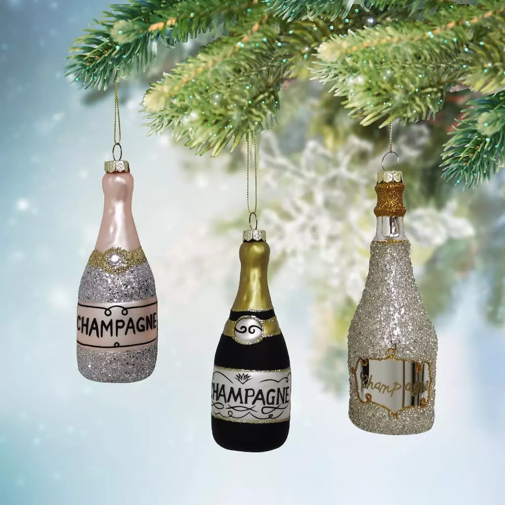 This champagne ornament will be the perfect addition to your holiday decoration collection. Hang it on display on a Christmas tree or ornament stand.