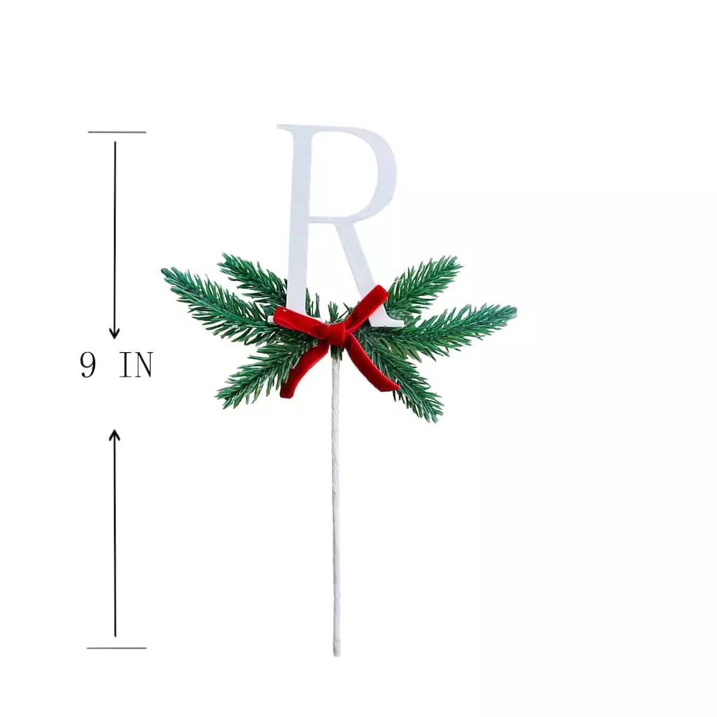 Transform your Christmas floral arrangement with this Christmas-themed letter R pick. Combine it with glittery poinsettias, frosted pinecones, and holly berries to create the perfect display!