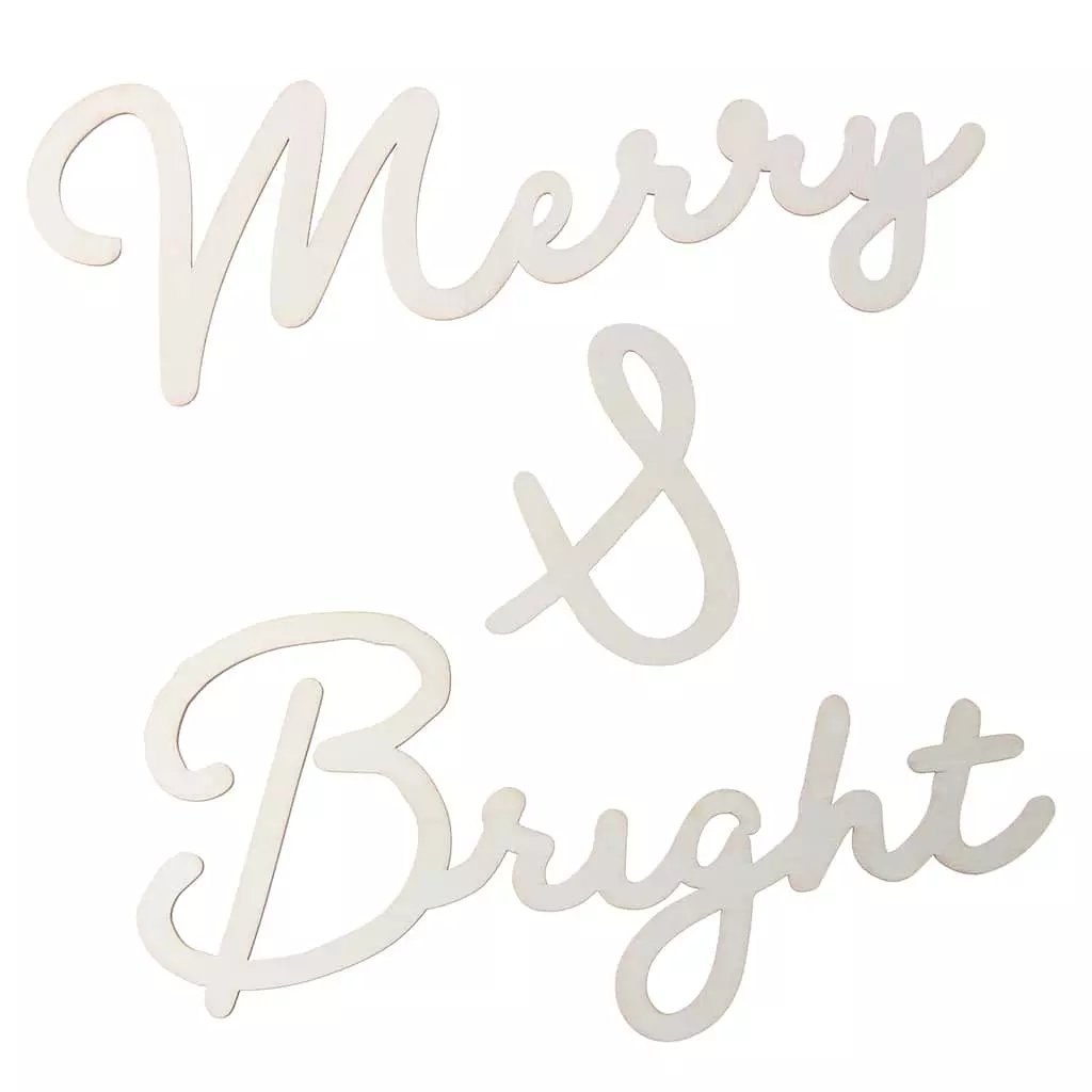 Bring your own special flourish to your holiday decorating with these unfinished wooden words, featuring the phrase “Merry & Bright.” Embellish these pieces with paint, glitter and ribbon and use to craft festive wall plaques, handmade Christmas décor accents and more!