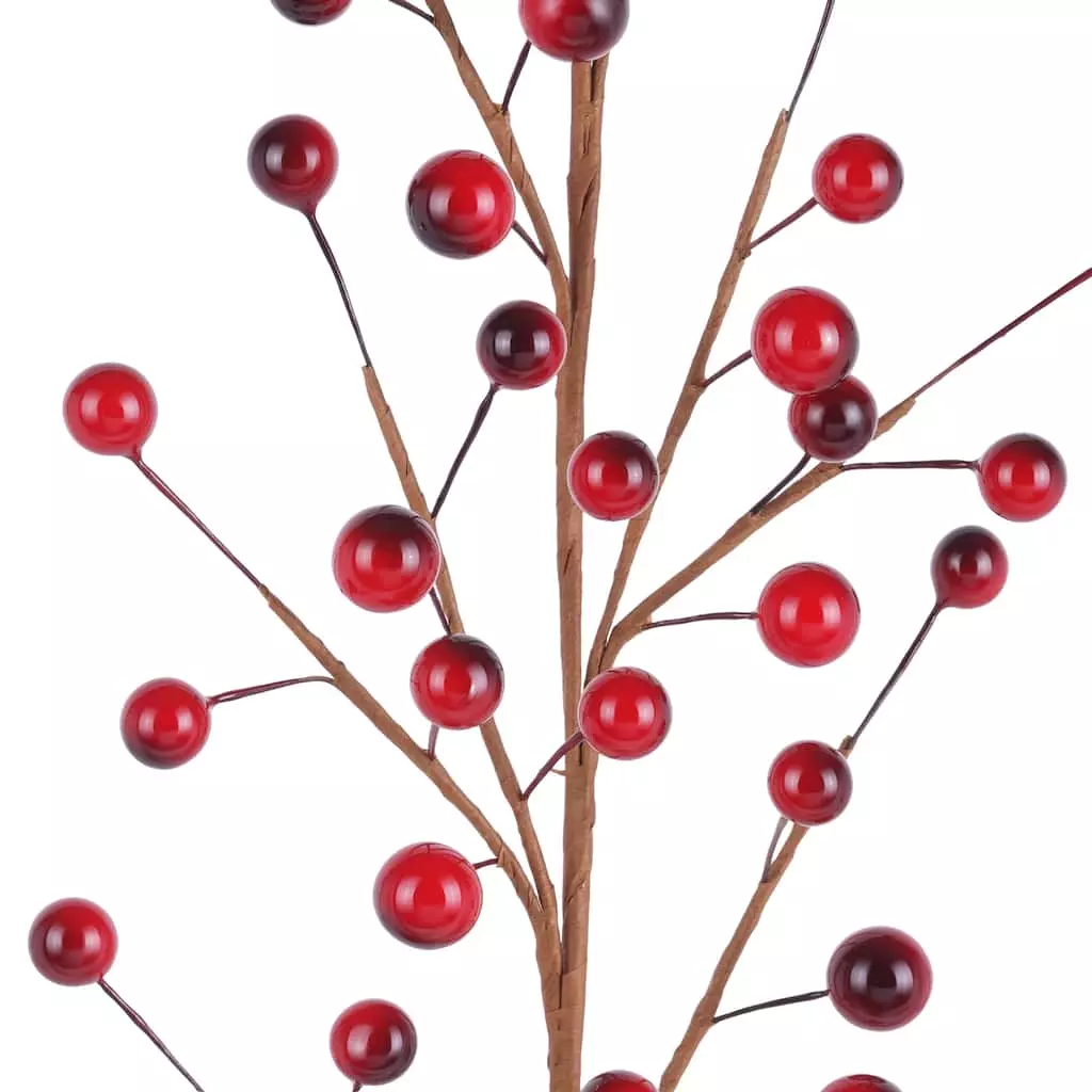 This festive stem features bright dark red holly berries. Use it to add Christmas flair as you create wreaths and floral arrangements or as an element of your holiday decorating theme.