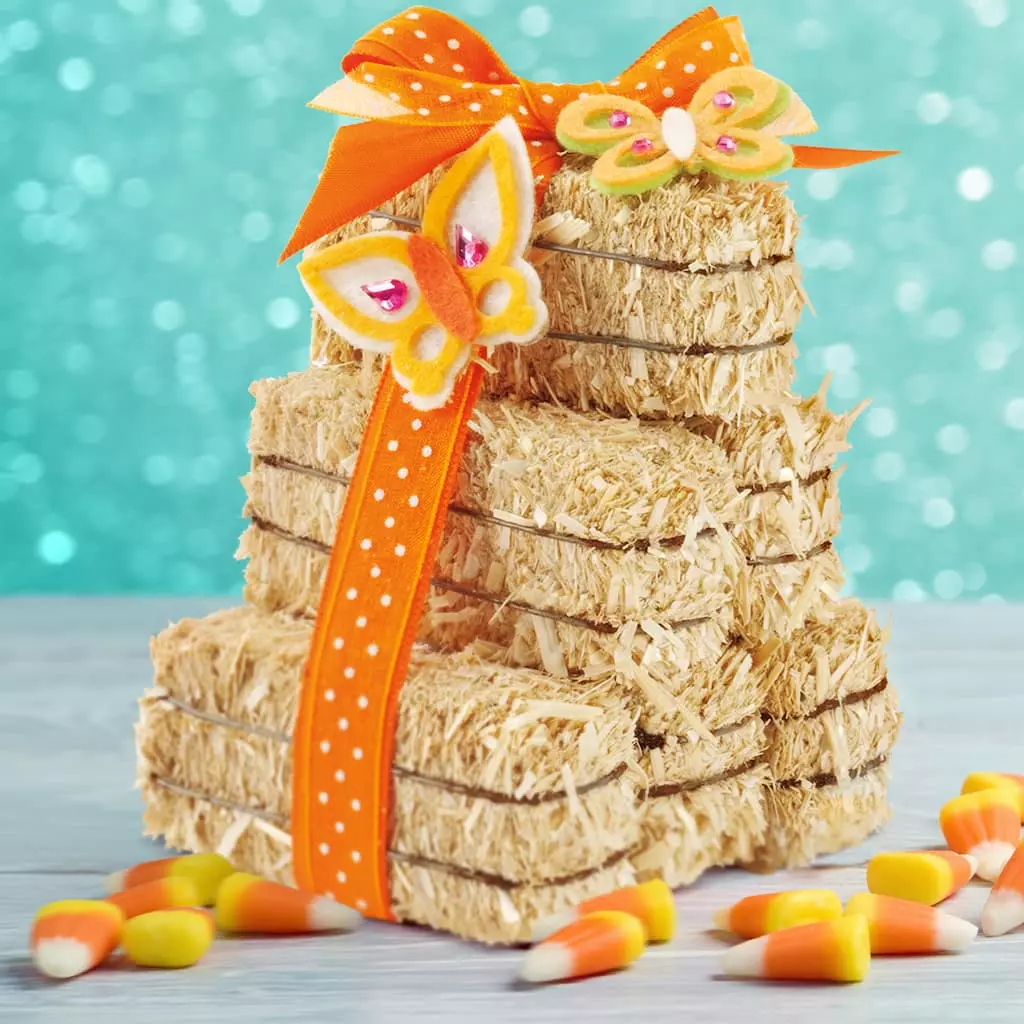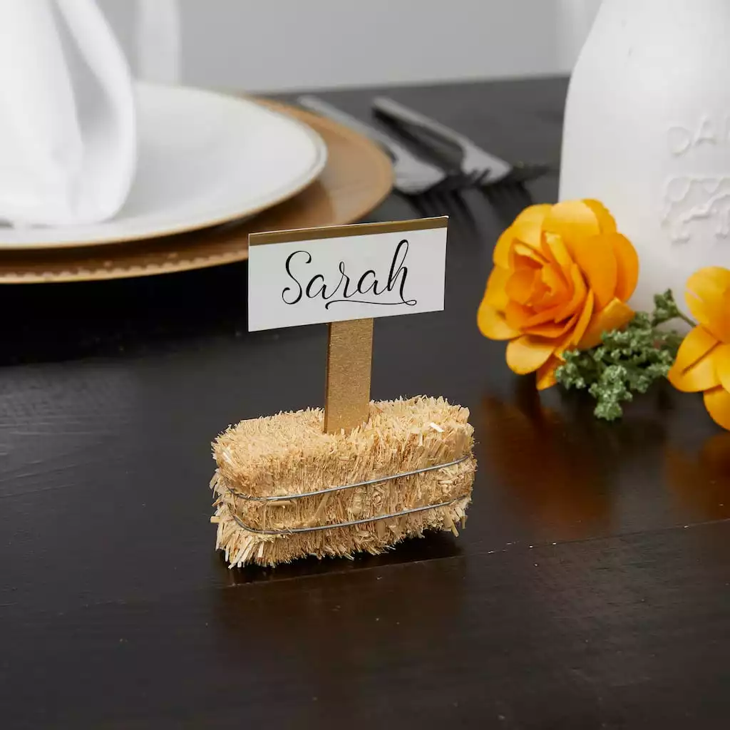 This decorative straw bale is made from high-quality, natural, barley straw. Sun-baked straw has a rich, golden color that is perfect for indoor or outdoor home dรฉcor and is bound with durable, rust-resistant, galvanized wire. Display one bale by itself or stack a few together to create a fall display. The 2.5″ straw bale size is great for adding a rustic, farmhouse-chic or western style to special events like weddings, birthdays, engagement parties, baby and bridal showers and graduation parties.