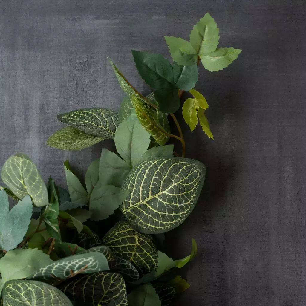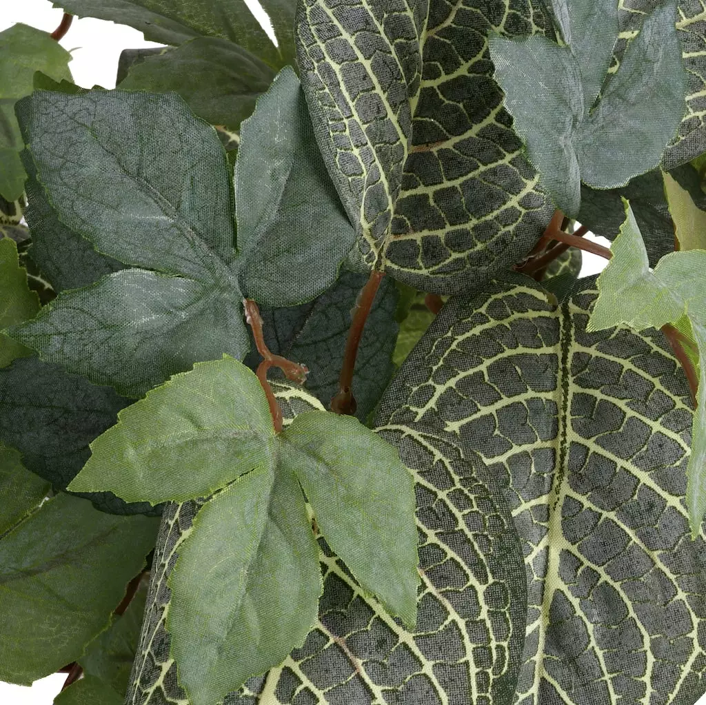 Accent your mantelpiece with this hanging fittonia bush. The textured foliage of this bush makes it a great choice for floral arrangements.