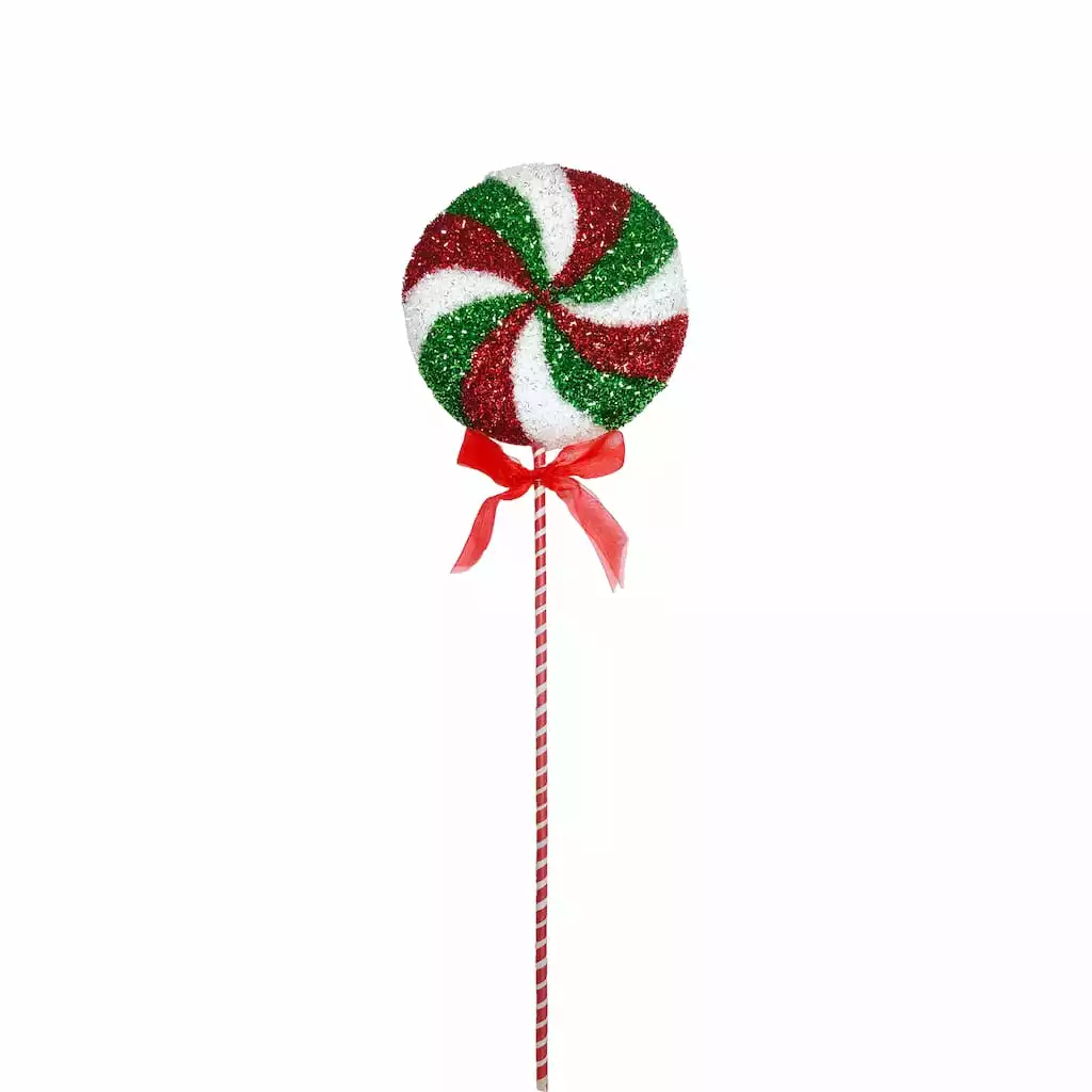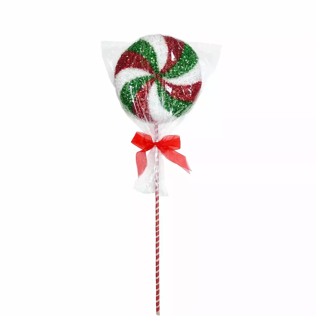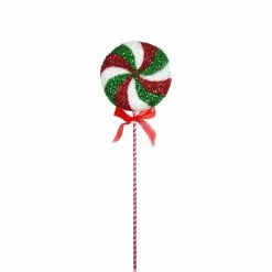 Add a fun, festive touch to your holiday dรฉcor by adding this swirled lollipop stem with a pretty bow. Use it to give a little playful Christmas cheer to a vase of snow white blooms and lush greenery on a mantel or entryway table in your home.ย