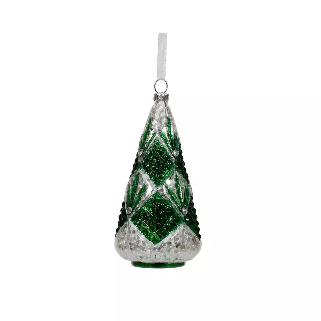 Add this glass Christmas tree ornament to your holiday dรฉcor. Place it on a Christmas tree or display the ornament on a ornament stand.