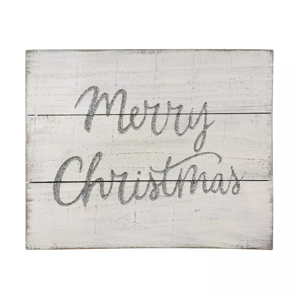 Incorporate a bit of rustic winter charm into your holiday dรฉcor with this charming wall sign from Ashland. With whitewashed planks embellished with a glittery “Merry Christmas,” hang this piece over your mantel or an entryway table to bring some old fashioned festive cheer to your home.