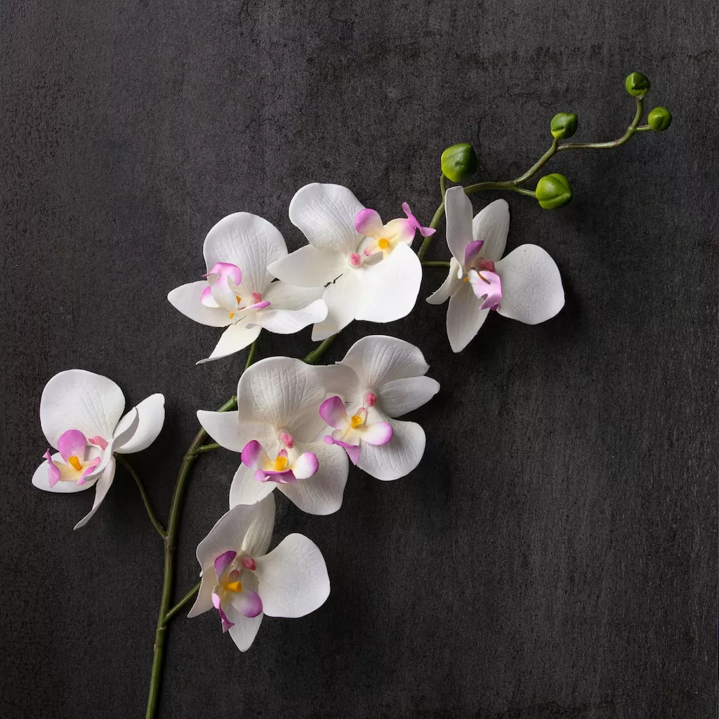 This beautiful orchid spray can be used alone in a vase or grouped with other flowers to make a larger arrangement. It can also be used as an element in everyday craft projects or an accent in your home or office dรฉcor.