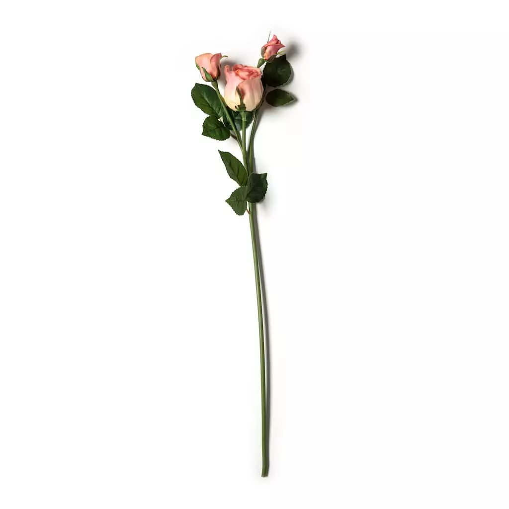 Use this dainty pink rose stem to add soft color to your floral arrangement or wreath project. You can also place in a simple glass vase on your windowsill, adding elegance to any room.