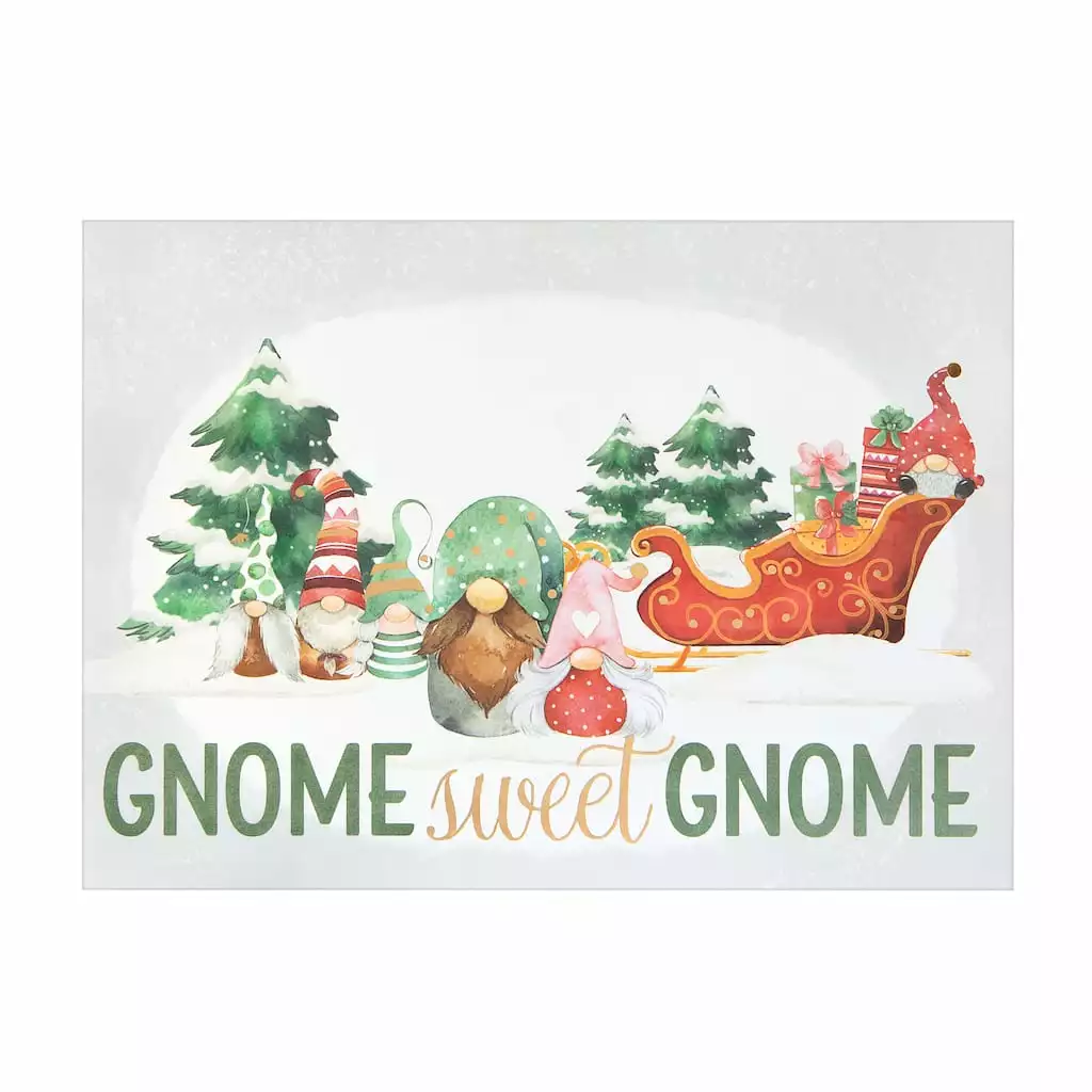 This flip top decorative box is the perfect piece for your home dรฉcor and storage. It features “Gnome Sweet Gnome”, a seasonal design with gnomes, and mixed greenery and berries on the flap.