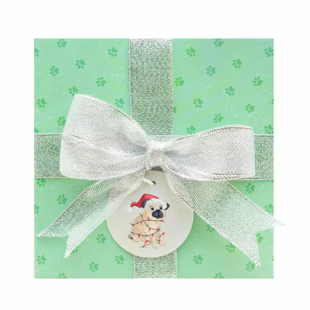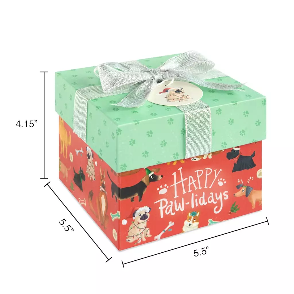 Featuring a fun pattern of dogs wishing everyone “Happy Paw-lidays,” this charming box is a fantastic way to dress up your holiday presents with festive flair. With a pretty sheer bow and coordinating tag, use for decorating under the tree or to hold a special gift sure to stand out as you celebrate the Christmas season with your loved ones.