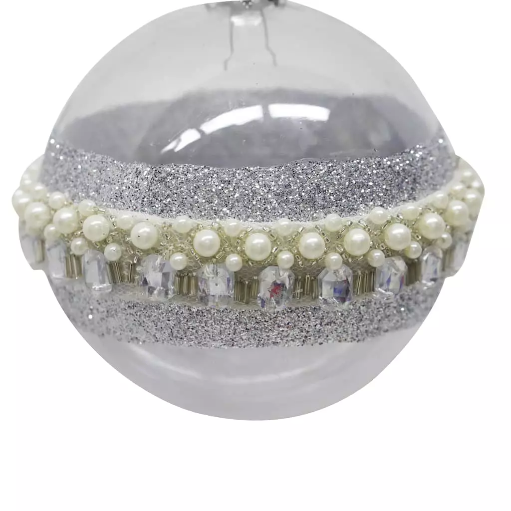 This beautiful glitter and pearl ball ornament is perfect for sprucing up your holiday dรฉcor. Use it to embellish a tree, wreath, or garland for a whimsical touch!