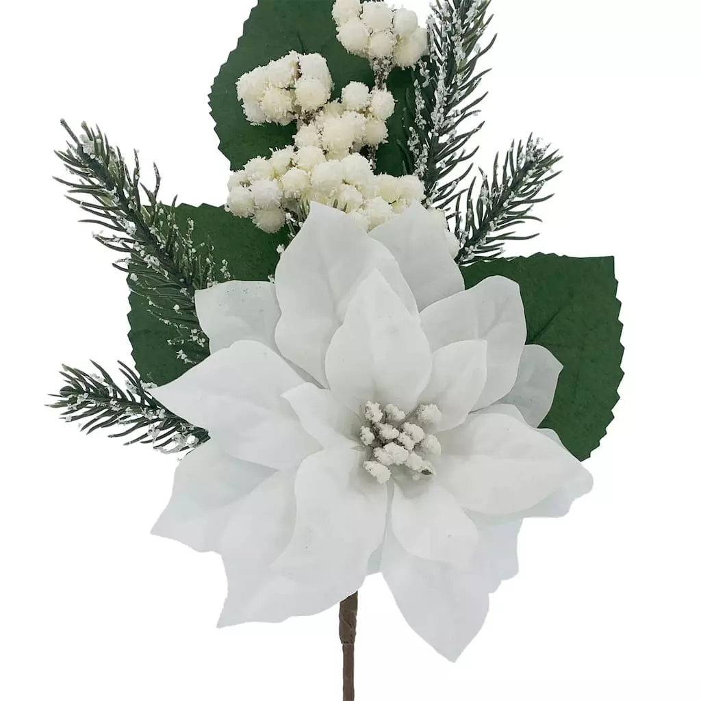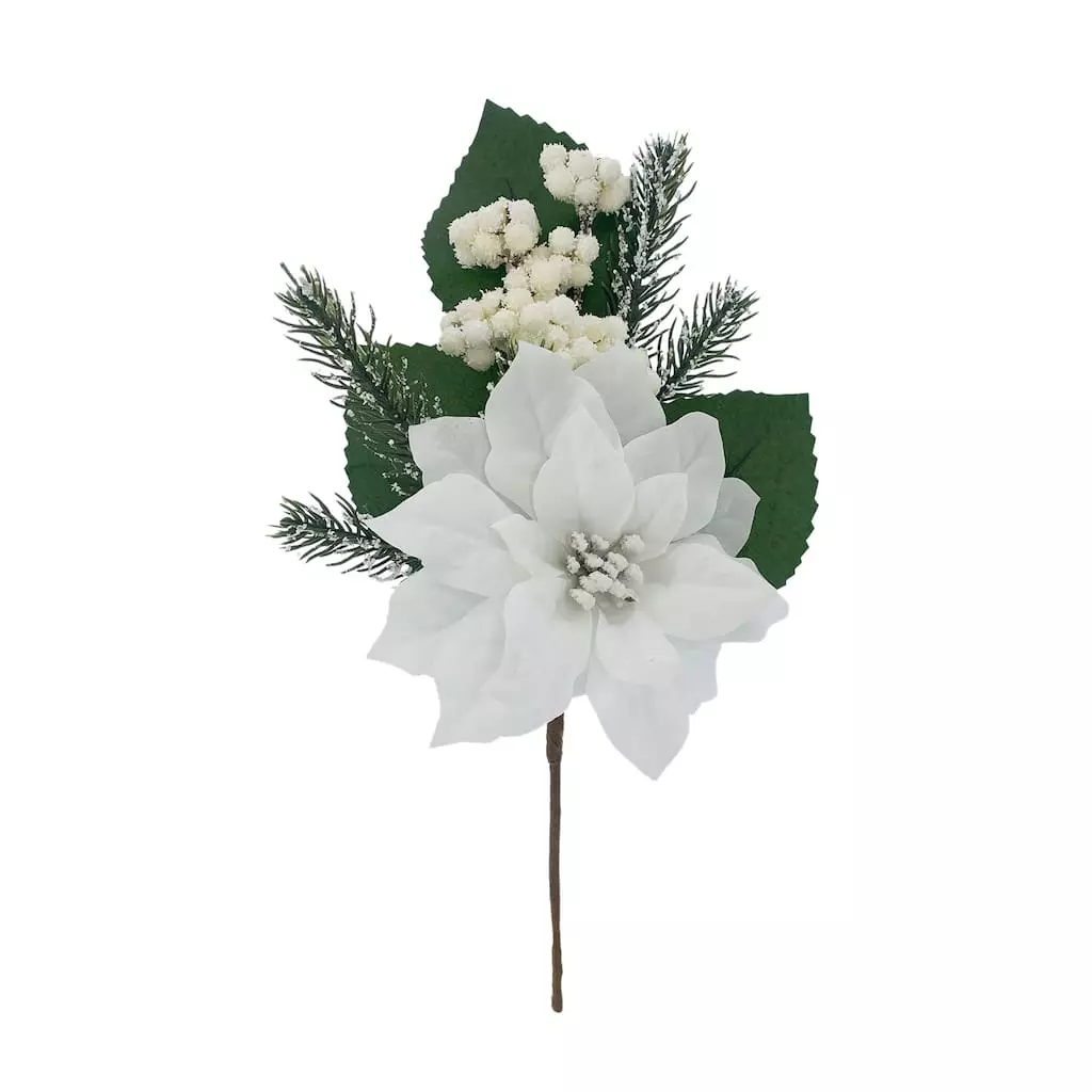 Decorate your home with this beautiful poinsettia and berry pick by Ashland. It will look lovely for the holiday season in a vase full of greenery.