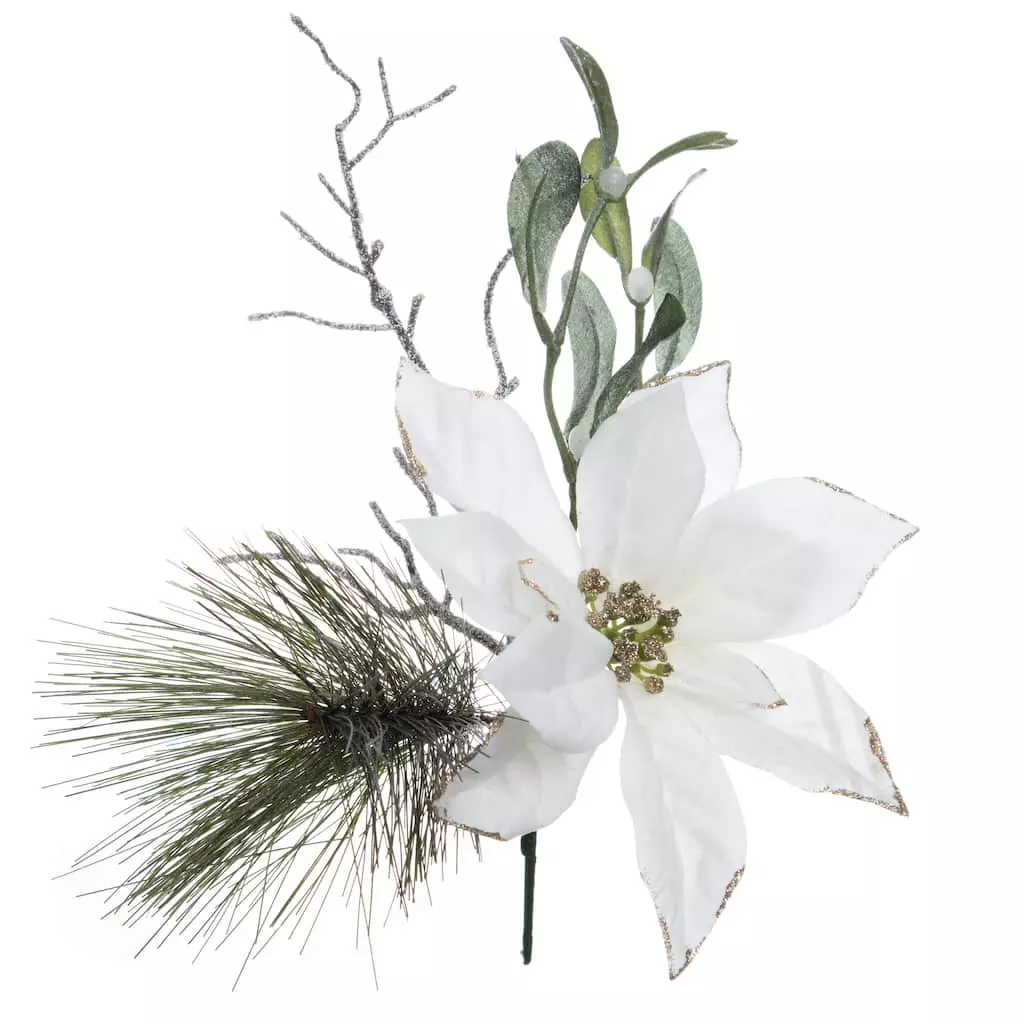 Decorate your home this holiday season with this poinsettia pick by Ashland. Place it in a clear vase with greenery stems for a festive display.